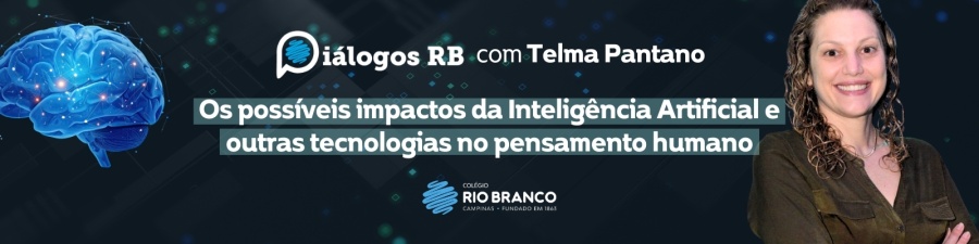 Dando continuidade às reflexões sobre o impacto do mundo digital, o Diálogos RB receberá Telma Pantano, fonoaudióloga e psicopedagoga pela USP, no dia 25/03, para discutir os possíveis impactos da Inteligência Artificial e outras tecnologias no pensamento humano.