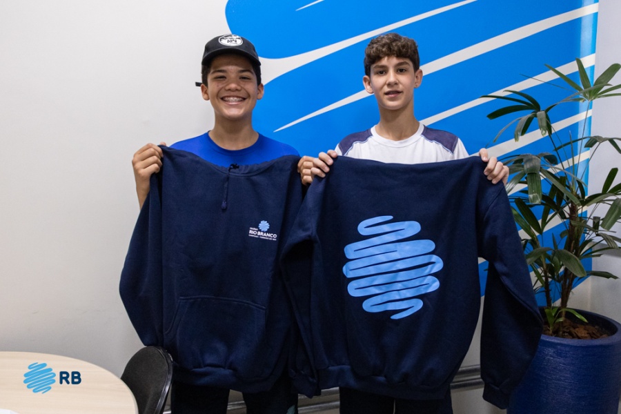 Os alunos Noah Chaves Vicente e Bento Lemos Paes de Barros, do EF-7M2, idealizaram o novo modelo de moletom disponível para os alunos do RB. Conversamos com os dois alunos para entender como surgiu a ideia: “O Bento teve a ideia, eu acho que foi do nada… Daí ele me descreveu a ideia e eu desenhei”, comenta Noah.