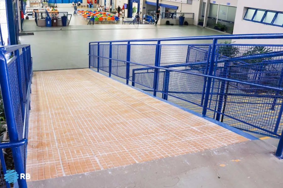 - Instalação de rampas com piso antiderrapante visando a segurança;