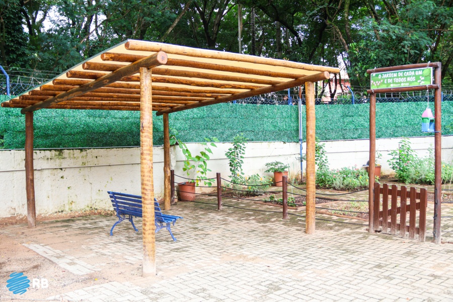 No Ensino Fundamental Anos Iniciais, foram organizados novos espaços de convivência para os alunos, com a instalação de mesas, bancos e pergolados, proporcionando áreas sombreadas e mais aconchegantes.